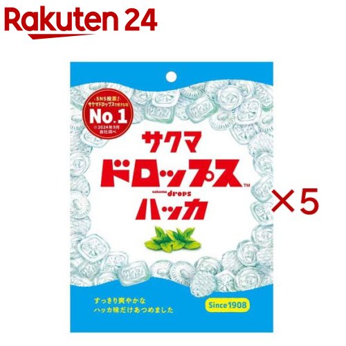 お店TOP>フード>お菓子>飴・キャンディー>キャンディー>袋入りドロップス ハッカ (105g×5セット)【袋入りドロップス ハッカの商品詳細】●サクマ公式SNSにて2024年9月人気のドロップスの味のアンケートを実施。集計した結果、ハッカが選ばれ、商品化に至りました。【品名・名称】キャンディ【袋入りドロップス ハッカの原材料】砂糖(国内製造)、水飴、香料【栄養成分】1粒標準3.7g当たりエネルギー:15kcal、タンパク質:0g、脂質:0g、炭水化物:3.6g、食塩相当量:0g【アレルギー物質】なし【保存方法】直射日光や高温多湿の場所を避けて保存【ブランド】サクマ【発売元、製造元、輸入元又は販売元】サクマ製菓※説明文は単品の内容です。リニューアルに伴い、パッケージ・内容等予告なく変更する場合がございます。予めご了承ください。・単品JAN:4903901191258サクマ製菓152-0001 東京都目黒区中央町1-5-20120-153693広告文責:楽天グループ株式会社..