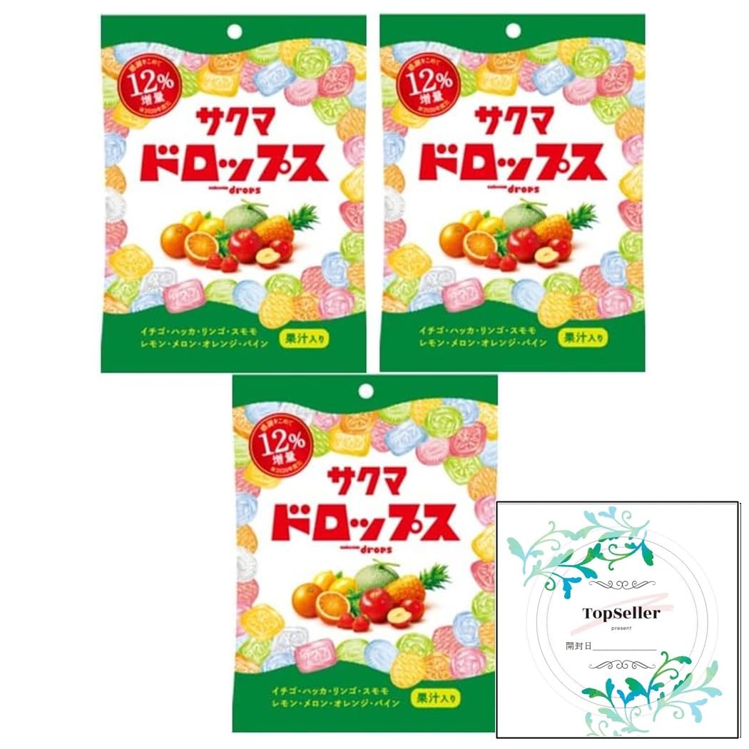 サクマ袋入りドロップス(3袋)+ Topsellerオリジナル開封日シールセット おまけ付き