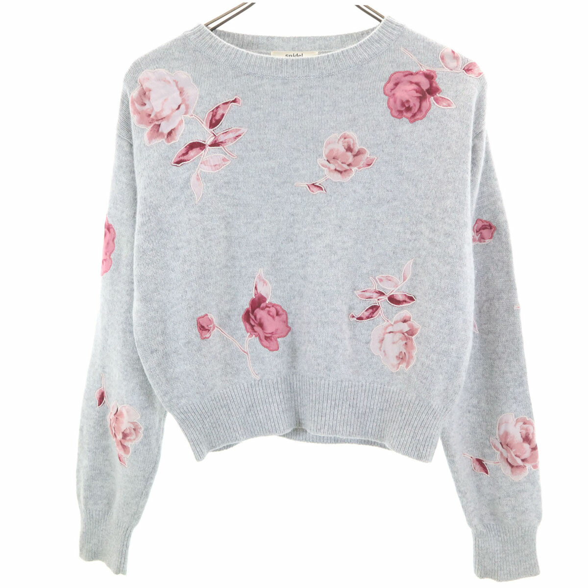 古着 SNIDEL スナイデル ローズモチーフ 長袖 ショート丈 セーター F グレー ニット レディース 【中古】