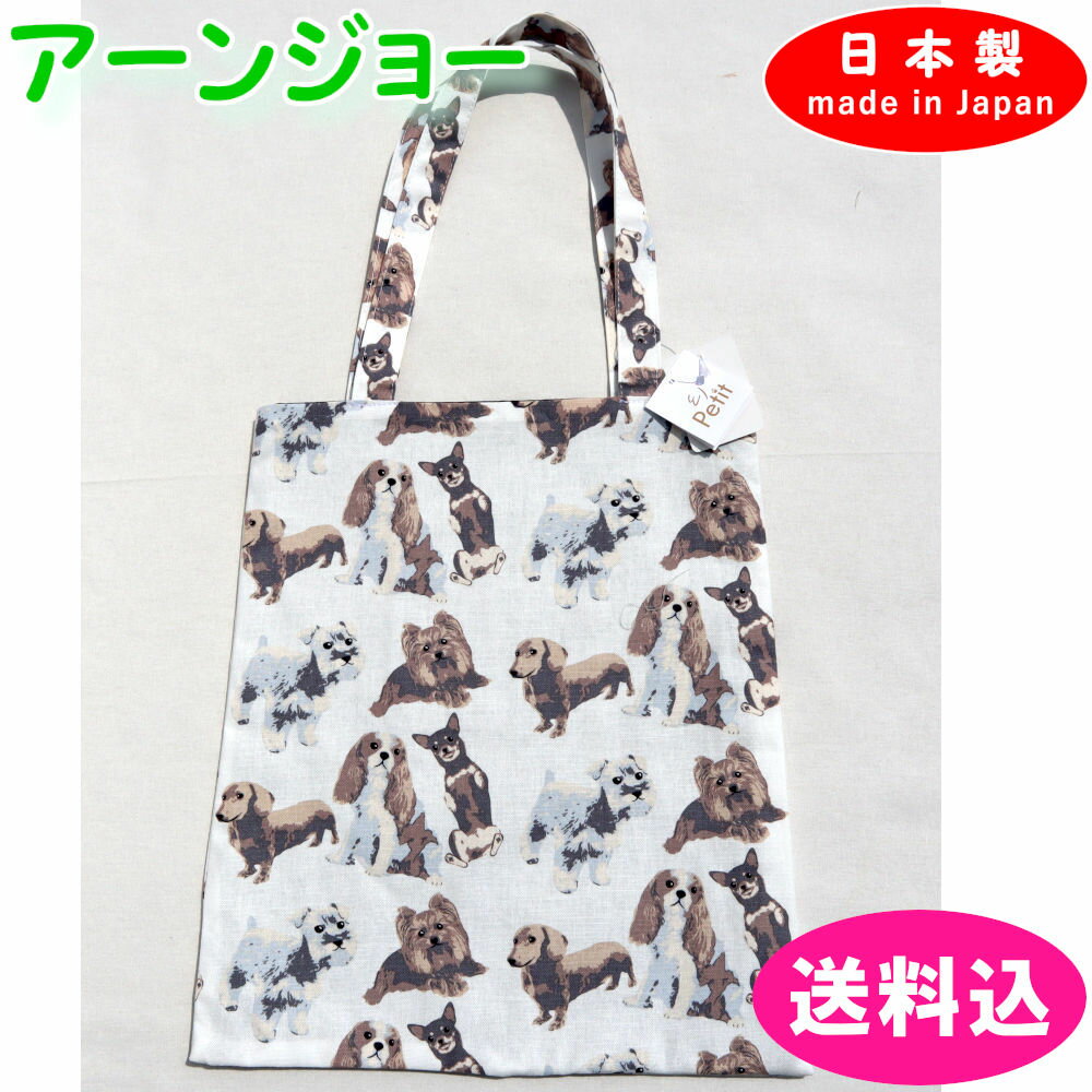 日本製 アーンジョー バッグ コットンリネンシリーズ トートバッグ マチなし 犬総柄
