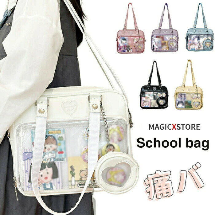 痛バ 痛バック スクールバッグ トートバッグショルダーバッグ スクバ ボストンバッグ 見せバッグ 斜めがけ 大容量 手提げ 合皮 透明 おたく 推し活 スクール バッグ ショ..