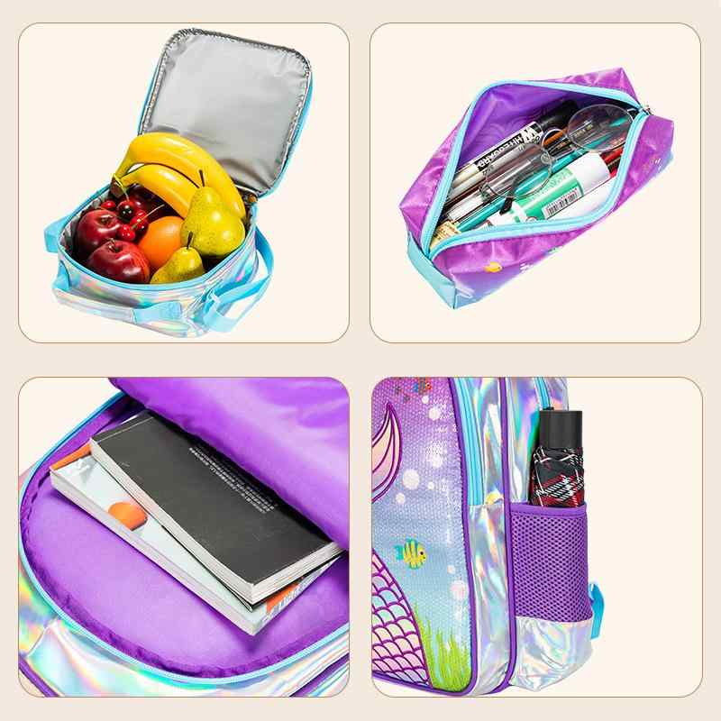 リュック キッズ 女の子 子供用 スクールバッグ 人魚 虹色 レーザー加工 大容量 ランドセル 小学生 通学 遠足 かわいい
