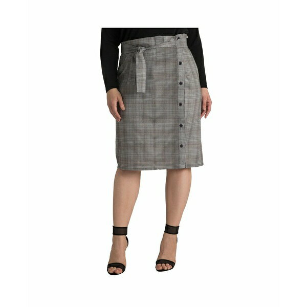 スタンダーズアンドプラクティス レディース スカート ボトムス Plus Size Glen Plaid Suiting Button Front Paper Bag Waist Belted Skirt Grey plaid