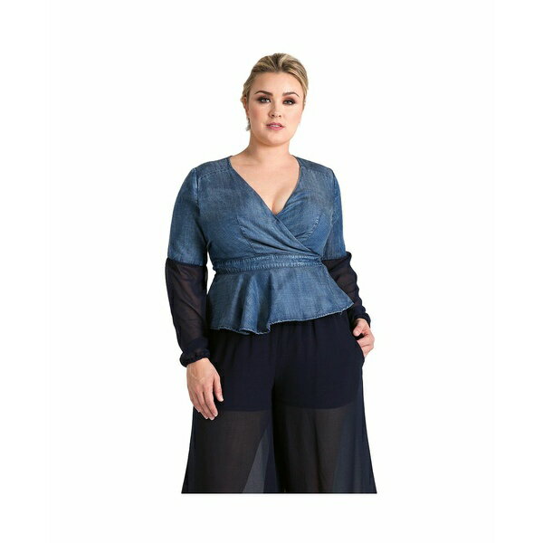 スタンダーズアンドプラクティス レディース カットソー トップス Plus Size Tencel Denim Puff Sleeve Wrap Top Blue wash