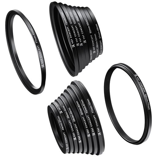 K&F CONCEPT ステップアップリング+ステップダウンリング 18枚セット 37-49mm 49-52mm 52-55mm 55-58mm