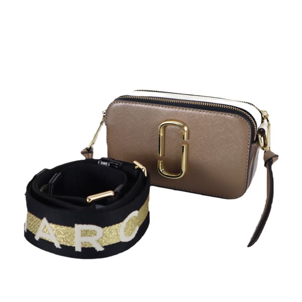 MARC JACOBS マークジェイコブス スナップショット ショルダーバッグ カメラバッグ M0014146 レディース ミニバッグ 鞄 ポーチ ファスナー式 ブラック系 店舗併売品 になります。ザ スナップショット ショルダーバッグ カメラバッグキー・スタイルとなる「SNAPSHOT」。フロントには「ダブルJ」ロゴ、サイドにはドッグ・リーシュのクラスプをあしらっています。コンパクトな長方形のシェイプにダブル・コンパートメント仕様で、ダブルジッパーはあえて逆方向に開くデザインとなっています。特徴的なギターストラップには「MARC JACOBS」のロゴを大胆に配置。別売りのストラップに変えてカスタマイズするのもオススメです。コンパクト・サイズなのでクラッチバッグとして手持ちで使ってもオシャレです。中古品。裏面ポケット部分に若干の型崩れや、金具に小キズがございますが、目立ったダメージなどは特にございません。まだまだこれからお使いいただける状態..