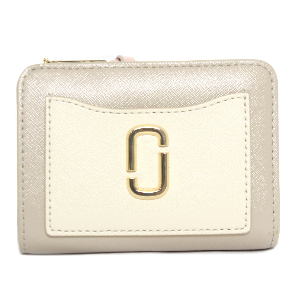 「中古」MARC JACOBS マークジェイコブス m0013356 289 二つ折り財布 財布 コンパクトウォレット スナップ ショット ロゴ ベージュ ピンク ホワイト レディース