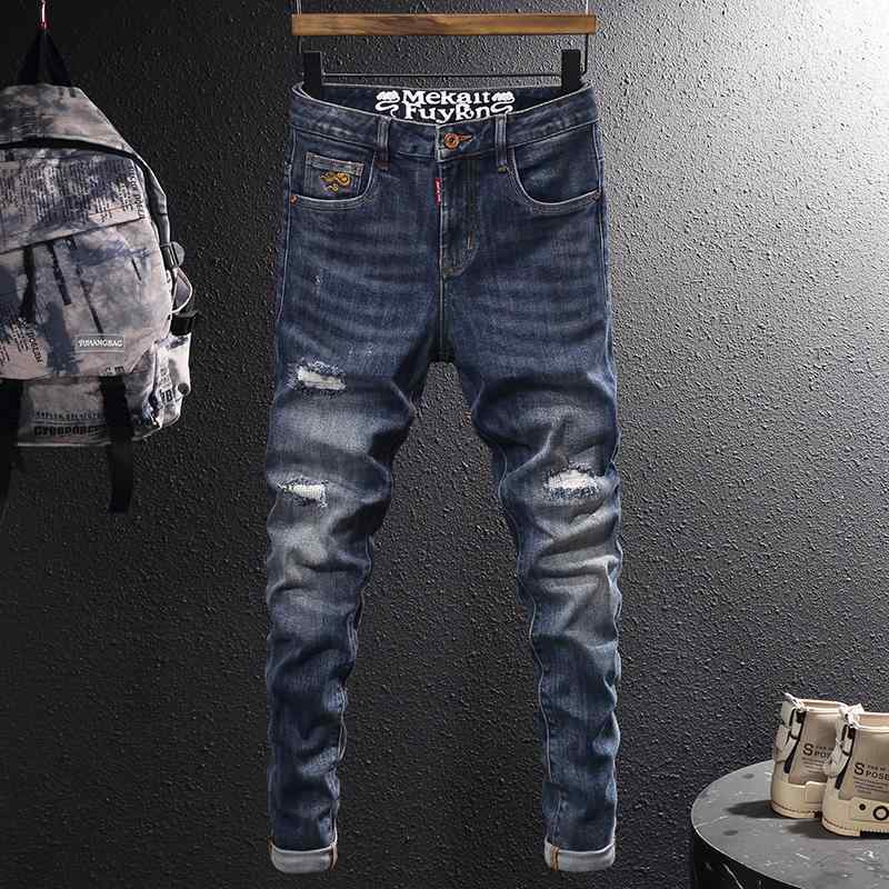 メンズ ファッション 服 オシャレ シンプル 大人 かっこいい 大きいサイズ ストリート 紳士服 春 ストリート ファッション ジーンズ クラシック ダメージ 加工 パッチ スリム ストレート パンツ