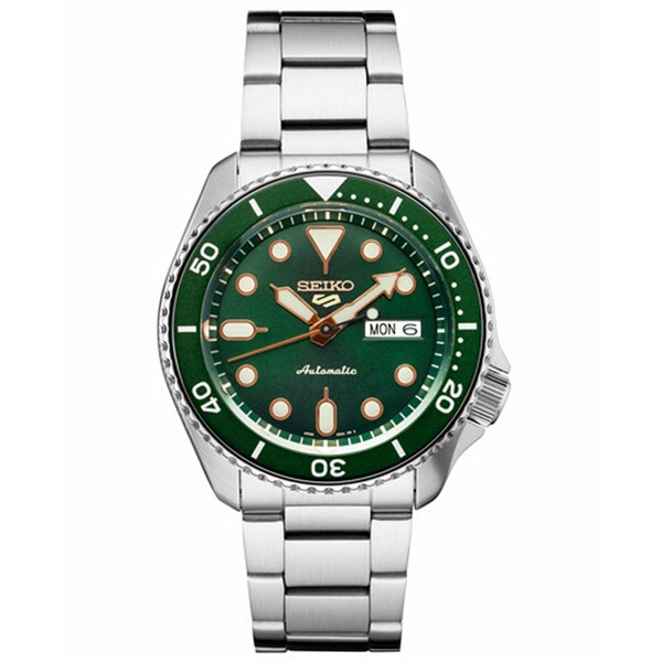 セイコー メンズ ブレスレット・バングル・アンクレット アクセサリー Men's Automatic 5 Sport Stainless Steel Bracelet Watch 40mm Green