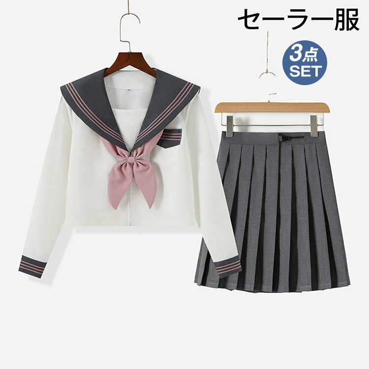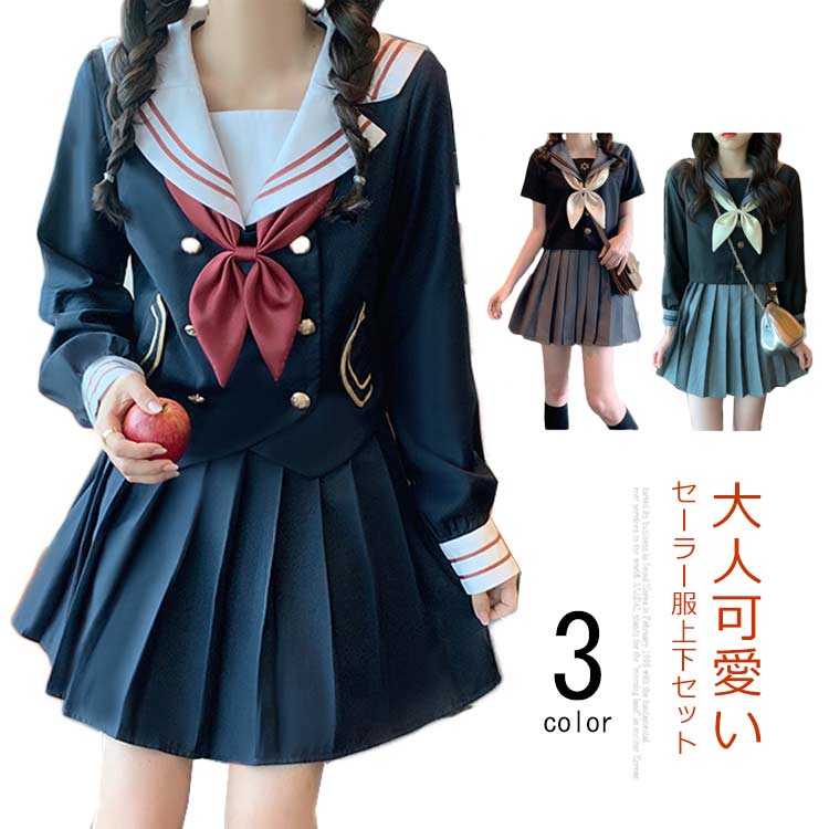 セーラー服 学生服 制服 学生制服 コスプレ JK JK制服 3点セット 上下セット 半袖トップス 長袖トップス スカート リボンタイ 衣装 仮装 女子制服 高校生 中学生 コスチ..