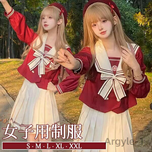 セーラー服 3点セット【上着+スカート+蝶結び】ハロウィン コスプレ セーラー 制服 学生服 半袖 長袖 女子高生 入学式 卒業式 コスチューム コスプレ衣装 長袖 半袖上下..
