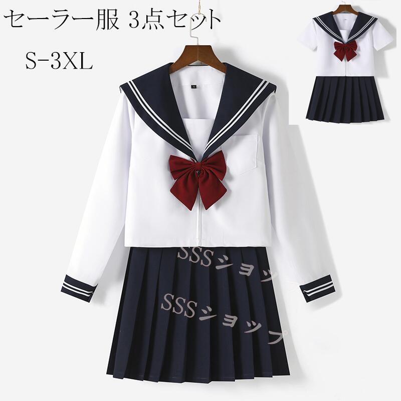 送料無料 セーラー服 3点セット 上下セット 長袖 半袖 学生服 夏 スカート コスプレ 服 コスチューム ハロウィン 学園祭 イベント 仮装 服 定番 可愛い