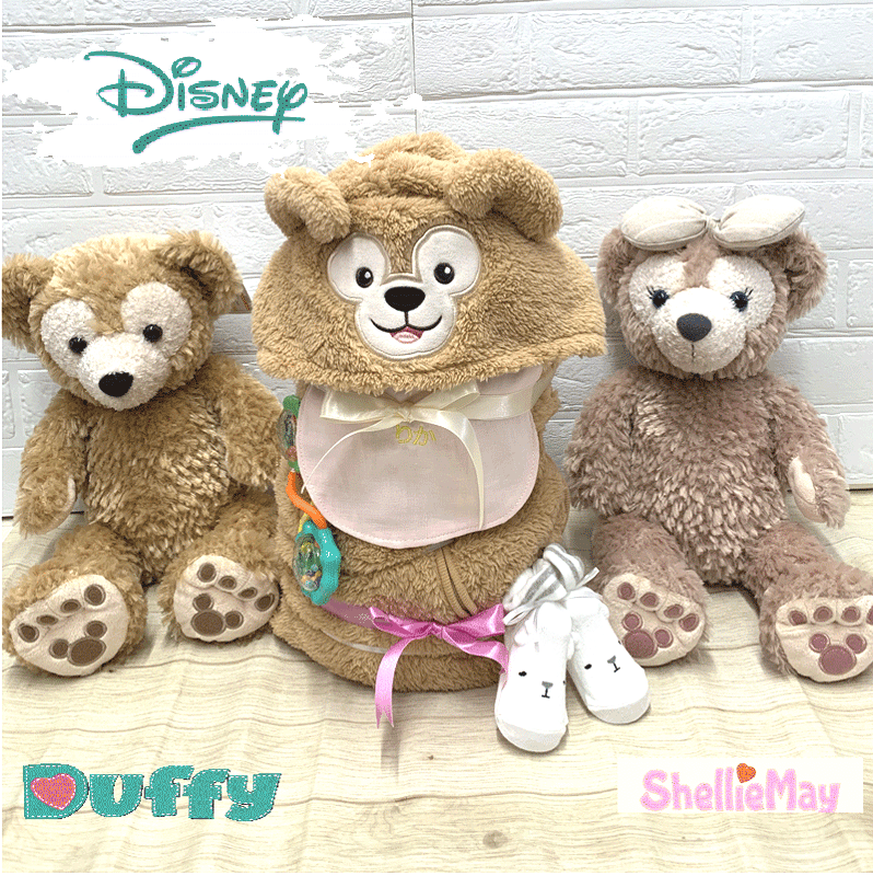 おむつケーキ 男の子、女の子の出産祝いに ダッフィー シェリーメイ ディズニーシー限定大人気のおくるみ付 テープ パンツ パンパース ディズニー オムツケーキ ..
