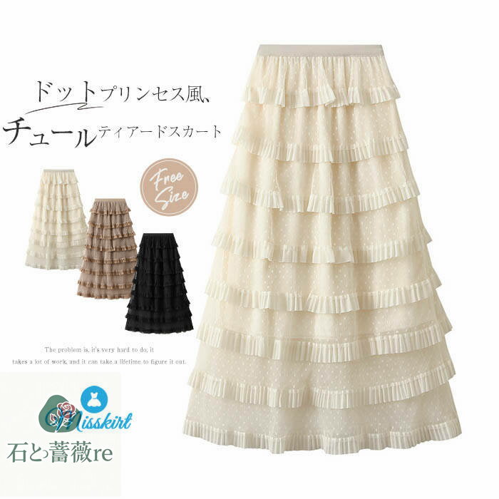 ティアード スカート レディース 新作 ドット柄 チュール ティアードスカート フレア チュールスカート ロング ボトムス ギャザー エレガント ガーリー プリンセス ウエ..