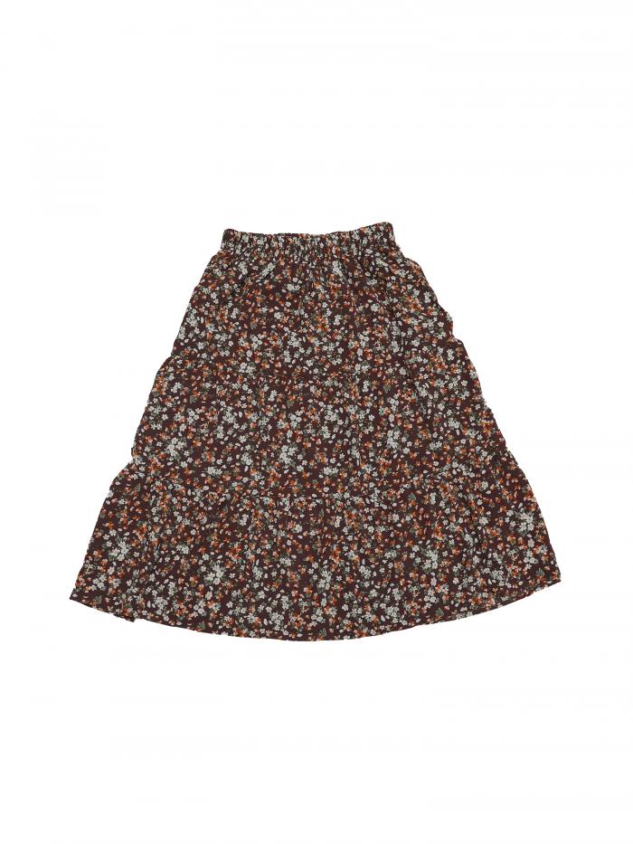 Allegra K ミディスカート ティアード 花柄 aライン ハイウェスト ひざ丈 ウエストゴム レディース ブラウン S