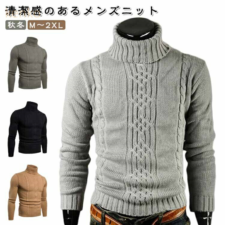 ニットトップス タートルネック メンズ ハイネック ニットセーター タイト ケーブル編み ニット 紳士服 長袖 無地 厚手 インナートップス ストレッチ 秋冬 シンプル カジ..