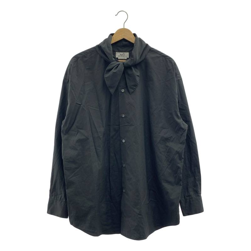 HERMES / エルメス | コットン タイカラー セリエボタン オーバーシルエット シャツ | 15 / 38 | チャコール系 | メンズ