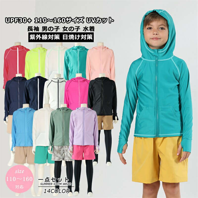 ラッシュガード キッズ 子供 水着 長袖 男の子 女の子 ジュニア UVパーカー ラッシュパーカー おしゃれ フード付き 120 130 140 150 160 UVカット 日焼け対策
