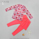 【送料無料】女の子 水着 長袖 ラッシュガード キッズ 水着 セパレート花柄 ガールズ水着 スイムウェア