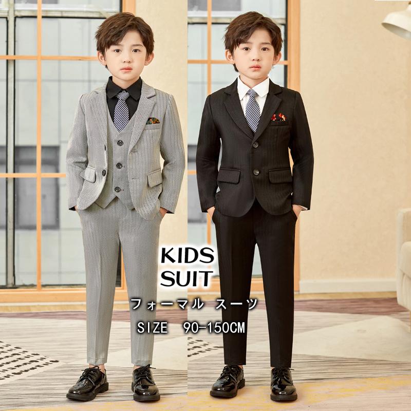子供服 スーツ 男の子 2点セット(ジャケット+ズボン) タキシード キッズ制服 ジュニア おしゃれ 長袖 ストライプ柄 無地 フォーマル スーツ イギリス風 卒業式/入学式/発..