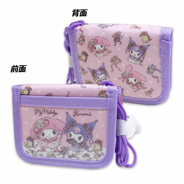 マイメロディ&クロミ 窓付き財布 約H100×W115×D20mm ラウンドファスナー二つ折りサイフ ネックストラップ付き 2025-2026年