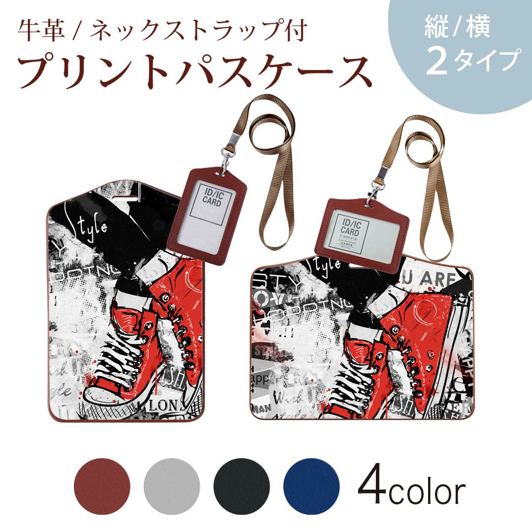 パスケース 定期入れ IC IDカード入れ グレー ブラック ブラウン ネックストラップ付 社員証入れ 通学 通勤 passcase 014972 イラスト 靴 赤 英字