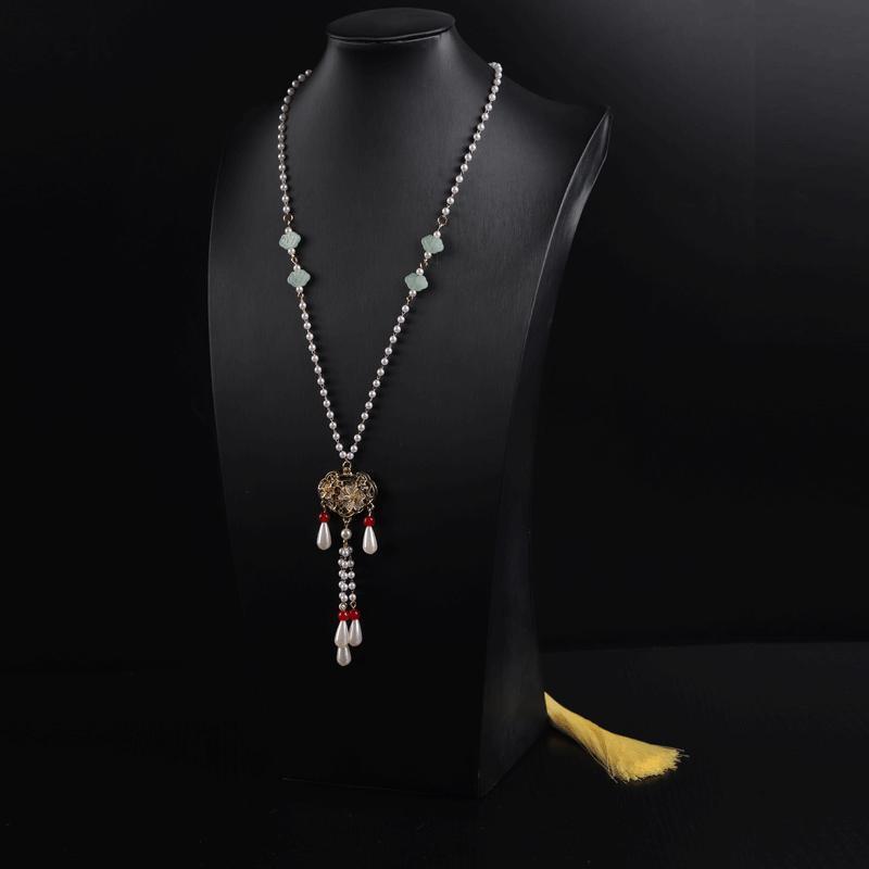 ネックレス レディース ロング タッセル 瓔珞 平安長命鎖 古風 民族風 明代漢服スタイル アクセサリー 合金製 背雲チャーム エスニック ファッション小物