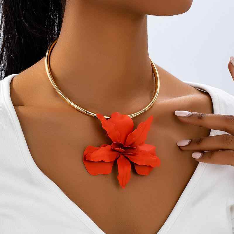 ネックレス ユニセックス ビッグフラワー 大ぶり 花モチーフ ペンダント チョーカー ショートネックレス 鎖骨チェーン 合金製 おしゃれ トレンド ストリート 欧米風 クー..