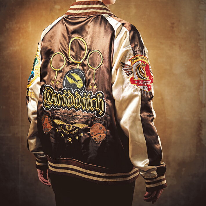 映画『ハリー・ポッター』に登場するスポーツ「クィディッチ」モチーフのスカジャンです。 クィディッチではおなじみのスニッチがワンポイントになっています! 背中側にはゴールポストやボールなどクィディッチモチーフのアイテムがデザインされています。 【仕様】 胸囲(平置き):約58cm 袖丈:約63cm 着丈:約58cm 素材:ポリエステル100%スカジャン メンズ レディース 映画 コスプレ 服 ※商品写真はサンプルのため、デザイン等若干の差異が生じます。予めご了承ください。 ※スタッフ採寸の為、サイズが多少異なる場合がございます。予めご了承ください。 ※お使いの画面環境により画像の色味に多少の差異が生じます。予めご了承ください。