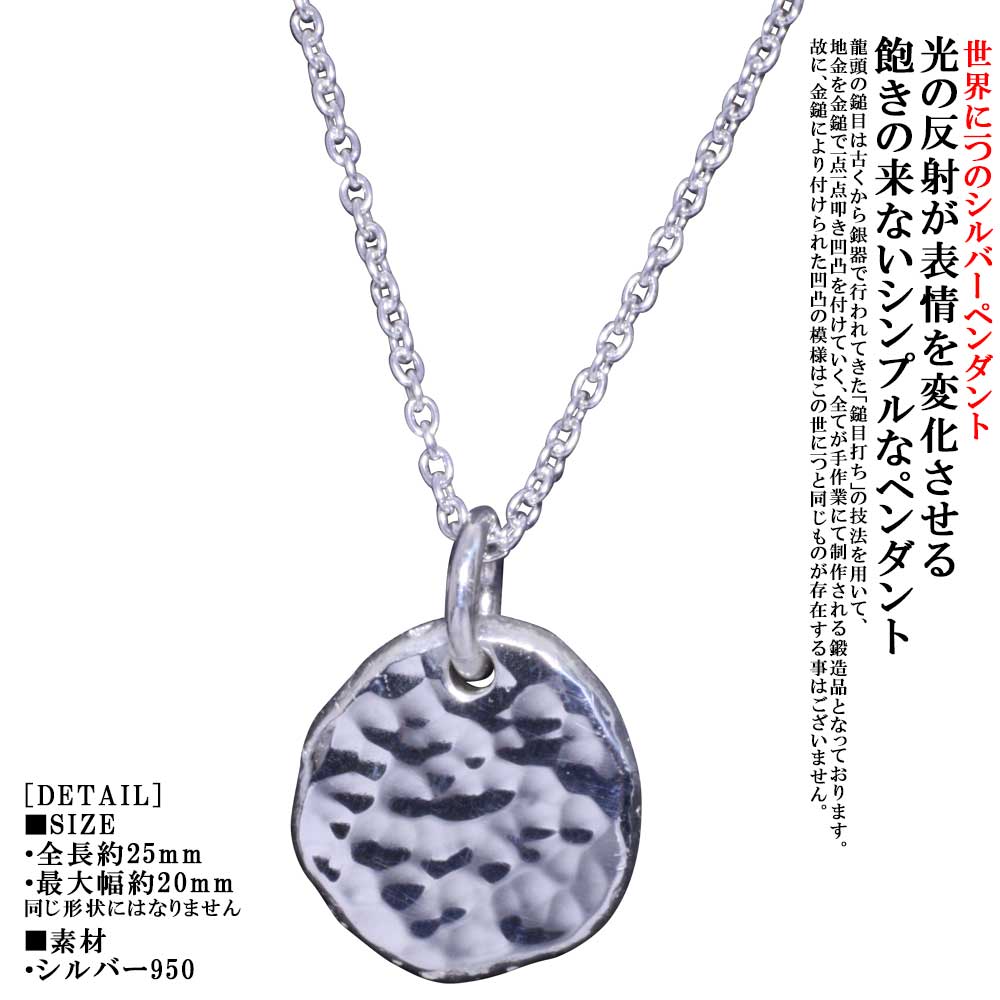 ペンダント メンズ 龍頭 丸 鎚目 メタル ペンダントトップ シルバー シンプル 和柄 和風 槌目 ハンドメイド 男性用 女性用 おしゃれ