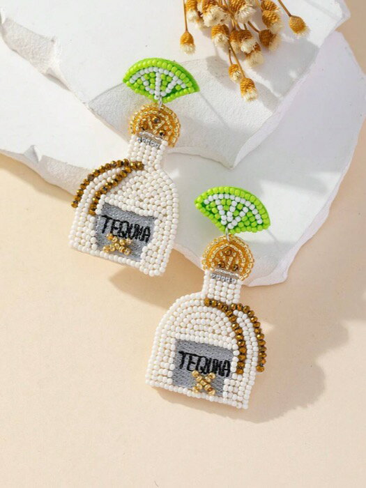 [ 8日から12日程度でお届け予定 ] ジュエリー レディース イヤーアクセサリー 1ペア ハンドメイド シードビーズ&テキーラボトル型ピアス、ファッショナブルなギフト..