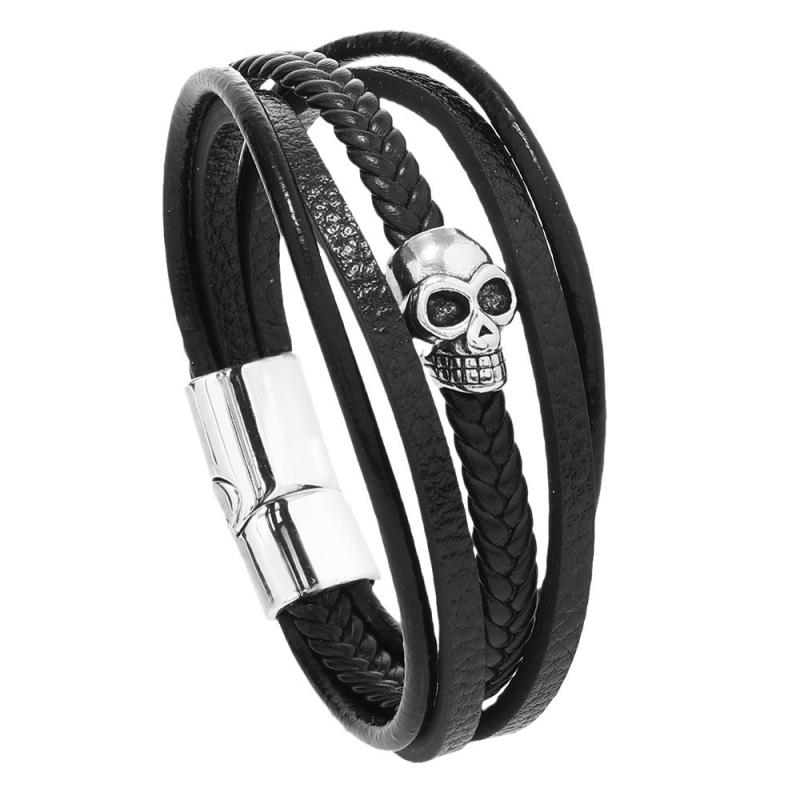 ブレスレット メンズ 男性用 パンク ロック スカル ドクロ 骸骨 レザー 革 合金 マグネット留め具 ハンドメイド 個性的 ユニーク クール カジュアル アクセサリー ファッ..