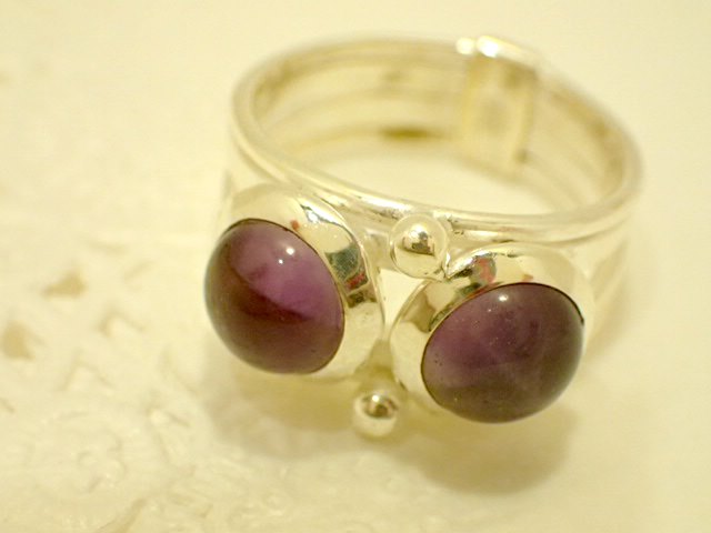 横に並んだ 2石のアメジストのシルバー925リング#12 天然石ジュエリーのお店 リング おしゃれ シルバー925 プレゼントにもおすすめ♪ ハッピーエイト