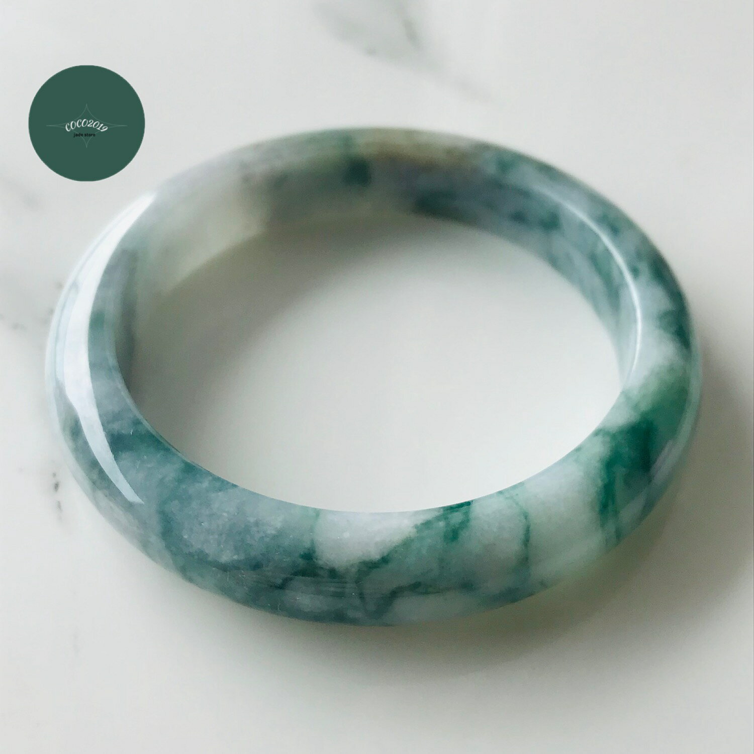 ミャンマー産 翡翠 ヒスイ バングル 一点もの 希少 ミルキー ダークグリーン 58.8mm ひすい パワーストーン hisui 本翡翠 アクセサリー 風水 占い 厄払い 厄除け..