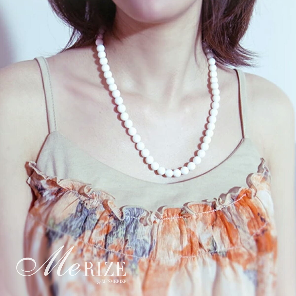 天然 ホワイトアゲート 50cm シンプル ロング ネックレス ユニセックス メンズ レディース sv925 シルバー 銀 ホワイト ミラーボールカット パール調 真珠風 白 パワース..