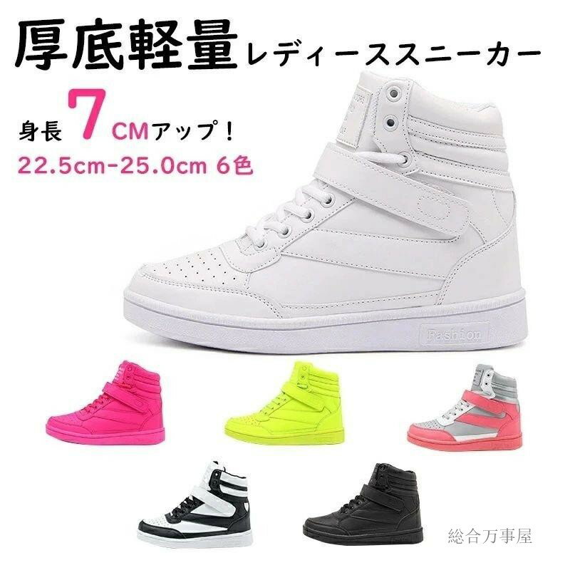 商品情報 【商品名】 スニーカー レディース 厚底 ハイカット 白 軽量 甲高 幅広 運動靴 シューズ インヒールスニーカー 美脚 人気 楽ちんスリッポン ハイヒール 靴 シークレットブーツ 黒 身長アップ おしゃれ 衝撃吸収 滑りにくい 疲れない 通気性 歩きやすい カジュアル 22cm 25cm 送料無料 【特徴】 ・足が7cm長く見える!滑りにくく耐摩耗性に優れる材料として、スポーツシューズなどにおいて、TPR(サーモプラスチックゴム)が用いられている。 履き口の面ファスナーがしっかり足首をサポート。さらに、クッション性のインソールとボリュームソールが衝撃を和らげ、足に優しい履きごこちをお届けします。 丁度良い高さのインヒールで美脚効果が叶います、フラットだから歩きやすいんです、ハイヒールに苦手な方は是非この一足を持ってべきです。 今だけではなく、四季使えるのが嬉しいんです、肌寒い時ソックスとのコーデは絶好だと思います。 【仕様】..