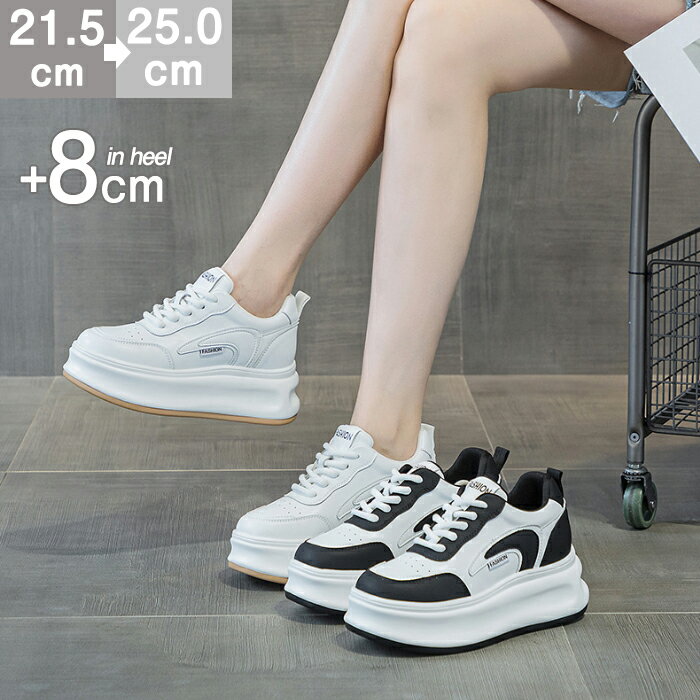 インヒールスニーカー 厚底スニーカー レディース シークレットスニーカー ダッドスニーカー 8cm 脚長 美脚効果 本革 レースアップ 歩きやすい 疲れない 身長アップ 防滑..