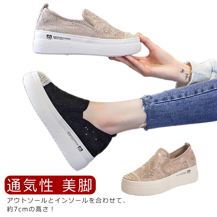 シークレットシューズ レディース 厚底スニーカー インヒール スニーカー スリッポン 厚底 シューズ レース 通気性 おしゃれ 美脚 通勤 疲れにくい 歩きやすい 蒸れにく..
