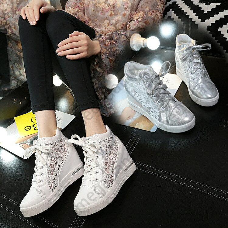 スニーカー レディース 8cmアップ インヒールスニーカー プラットフォームスニーカー 厚底 レース 春 夏 ブーツ シースルー ハイカット 通勤 おしゃれ シルバー