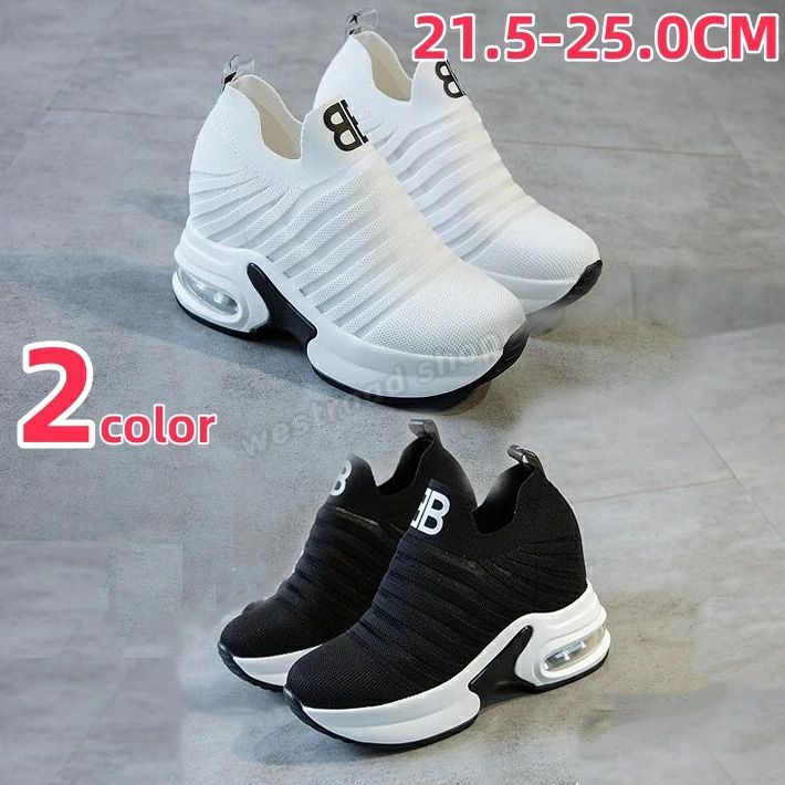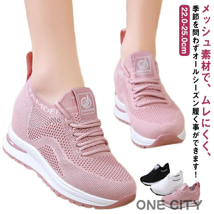 通気性 コンフォート 疲れにくい 身長UP 8CM インヒールスニーカー ウェッジソール レディース 靴 メッシュ スニーカー