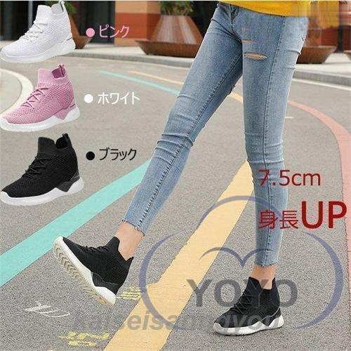 インヒールスニーカー レディース 厚底スニーカー 厚底 美脚 シークレットシューズ 厚底シューズ 7.5cm厚底 ヒールアップ 軽量 身長アッ
