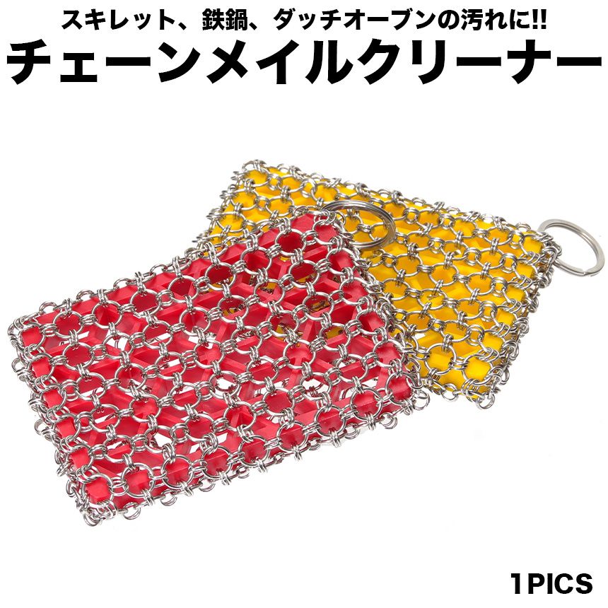 ■商品説明 油汚れ・焦げつきをしっかり除去 チェーンメイルクリーナー スキレット、鉄鍋、ダッチオーブンの汚れに!! ステンレスたわしでは、落としきれない頑固な汚れもコレ1つで解決。 精密に編み込まれたチェーンが汚れを除去します。 また、ステンレスたわしでは、使う度に金属片の脱落や型崩れが起きやすいですが、 チェーンメイルクリーナーがあれば、これらの問題も解決します。 片手に収まるハンディサイズ&持ち運びに便利なキーリング付き ■商品仕様 カラー:レッド、イエロー サイズ(約):11cm×8cm×2cm 重量(約):120g 材質:316ステンレス鋼、シリコン 生産国:中国 ■ご注意事項 ※ご閲覧の環境や撮影環境との相違により、 実際の商品と色味や素材感等が異なって見える場合がございます。 ※海外製造品のため、軽微な傷や汚れ等ある場合がございます。 ※サイズは、多少の誤差がある場合がございます。