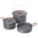 商品説明 ●ファミリーキャンプに最適なクッカー3点セット 家族でのBBQに最適なサイズ感のクッカーセット。 小鍋とフライパンは持ち手をたたんでコンパクトに収納できる。 大鍋は吊り鍋仕様なので、クワトロポッドやトライポッドに吊るすことも可能。 傷がつきにくいハードアルマイト加工により、安心してスタックできるのもうれしい。 ●大鍋は吊り鍋としても使える ハンドル付きで吊り鍋料理も簡単に行えるので、料理の幅が広がります。 ●ハードアルマイト加工で強度アップ 傷つきにくく耐久性の高いハードアルマイト加工を施しました。 ●収納袋付き 持ち運びに便利な収納袋付き。 メッシュ素材だから通気性も抜群。 仕様 本体サイズ:[大鍋](約)口内径19.5×深さ13×外形幅22.5cm/(約)3.2L[小鍋](約)口内径17×深さ10×外形幅28cm/(約)1.8L[フライパン](約)口内径17×深さ5.5×全長31.5cm 重量:(約)1.2kg 素材:アルミ 表面加工:ハードアルマ..