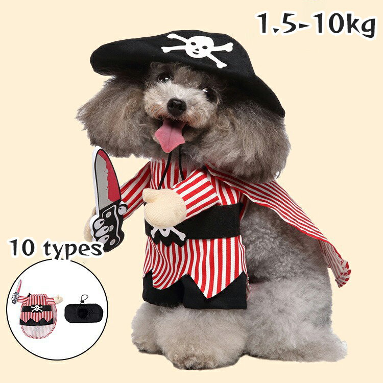 10types ハロウィン 可愛い 変身 ペット用品 犬服 コスチューム 猫用品 猫ちゃん 犬ちゃん用服 おしゃれ 簡単 装着 着せ替え 海賊 ハロウィン犬服 パーティー 服 キュー..