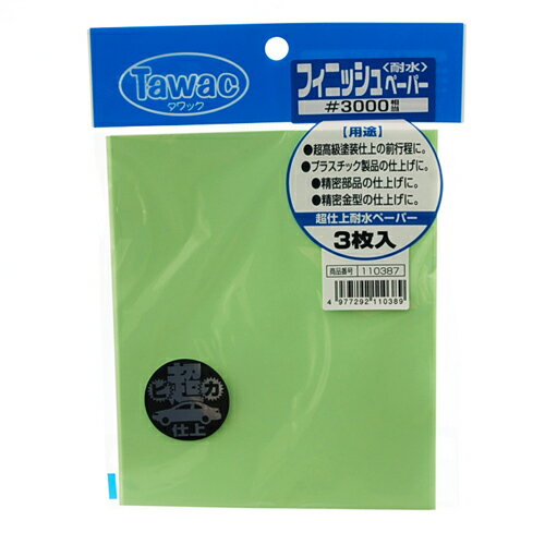 タワック フィニッシュペーパー 3枚入 #3000 藤原産業 紙やすり ヤスリ 耐水ペーパー 水研ぎ 仕上げ 塗面 下地 塗装 木材 プラスチック プラスティック プラモデル 模型 ..