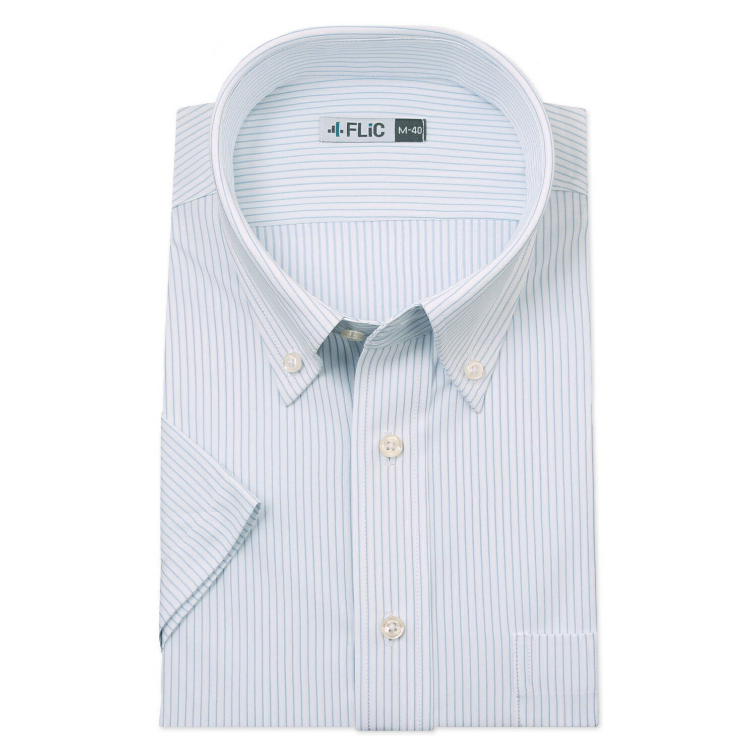 ワイシャツ ノーアイロン 半袖 メンズ ストレッチ ニットシャツ ニットワイシャツ 吸水速乾 ボタンダウン ニット素材 伸縮性 ストライプ サックス 水色 テレワーク リモ..