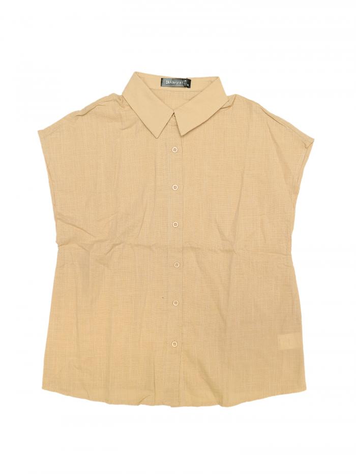 Allegra K 襟付きトップス 無地ブラウス ボタンダウンシャツ コットン キャップスリーブ カジュアル レディース アプリコット XS