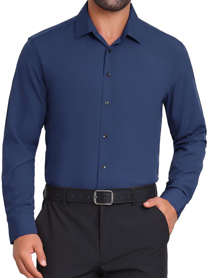 TATT 21 メンズ 無地 ボタンダウン 長袖 ストレッチ ビジネス ドレスシャツ ネイビーブルー L