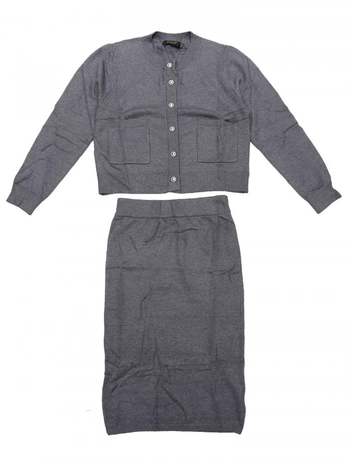 Seta T レディース ツーピース アウトフィット セーターセット ボタンダウンカーディガンとミディスカート カジュアルラウンジセット グレー L