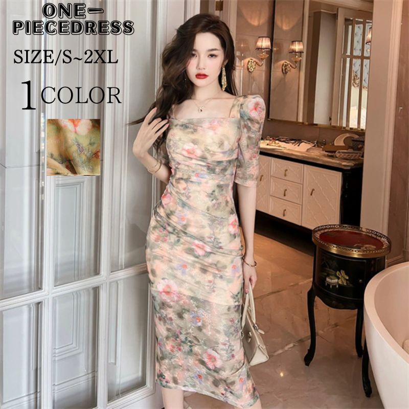 ワンピスドレス タイトドレス パーティードレス フォーマルドレス フラワープリント 姫系 セクシー上品 大人 きれいめ キャバ嬢 お水 結婚式 20代 30代 40代..